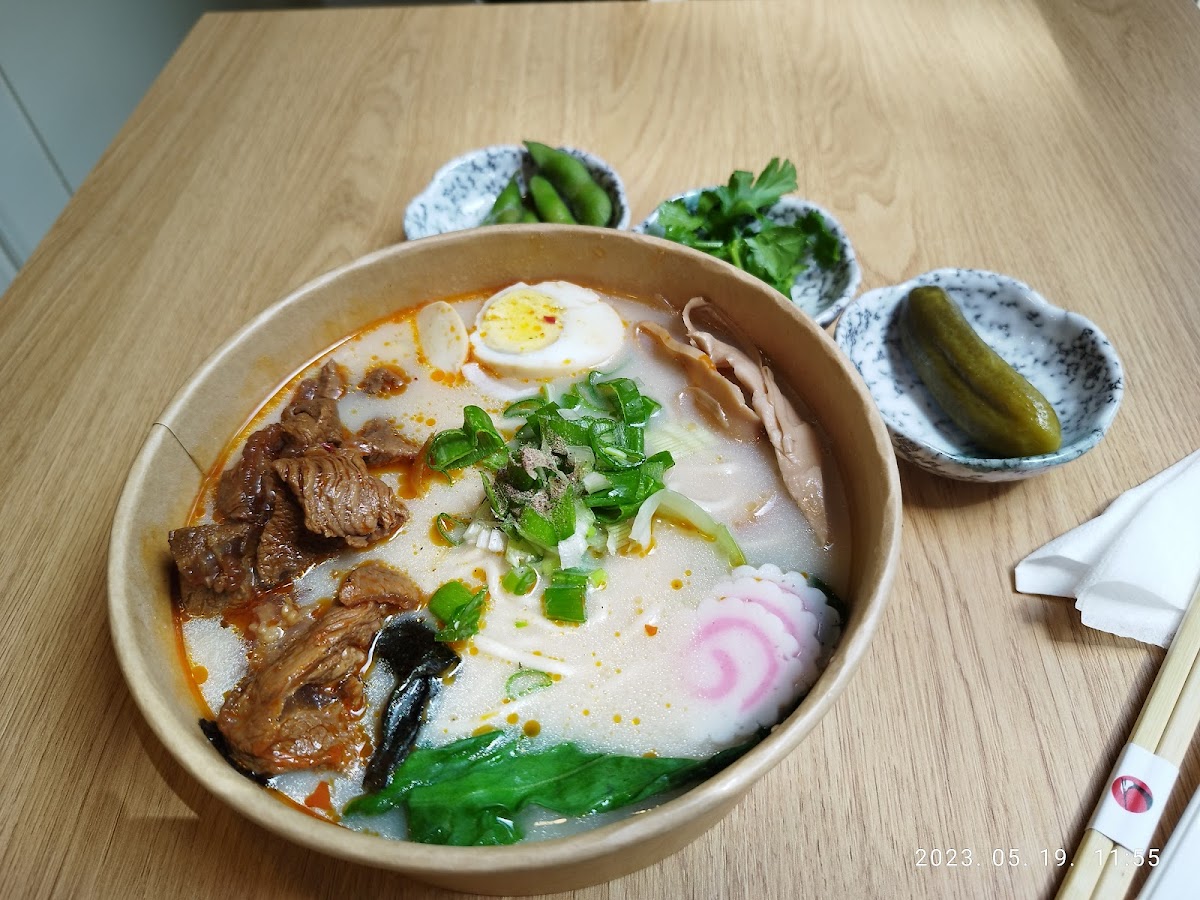 I got a Roasted Beef ramen for takeaway and it was amazing! The meat is tender, noodles are chewy and the broth is flavorful. (and of course it didn’t lack any vegetables so it was great!) The staff was friendly and the overall vibe of the place is really nice. 5/5, definitely recommend!:)